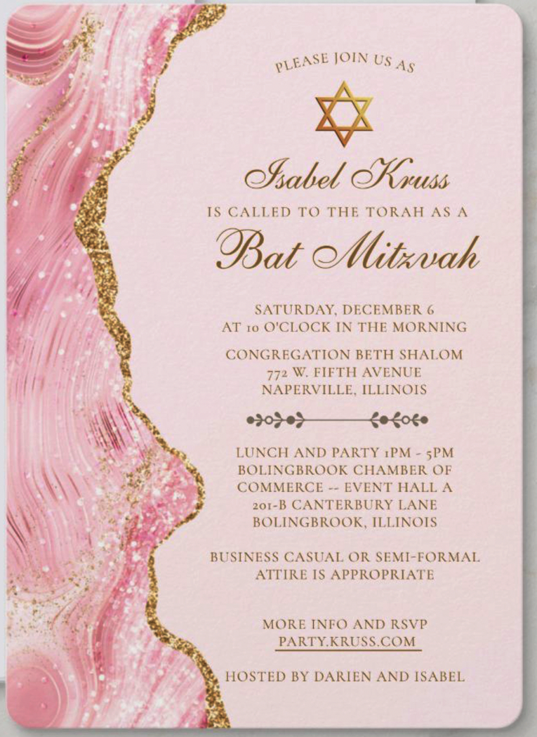 A bat mitzvah is a Jewish coming-of-age ritual for girls, marking their transition to religious adulthood at age 12 or 13. It signifies the point at which a girl is considered responsible for fulfilling religious commandments (mitzvot). The term also refers to the person who has reached this milestone and often involves a ceremony where she leads the congregation in prayer and reads from the Torah for the first time, followed by a celebration.